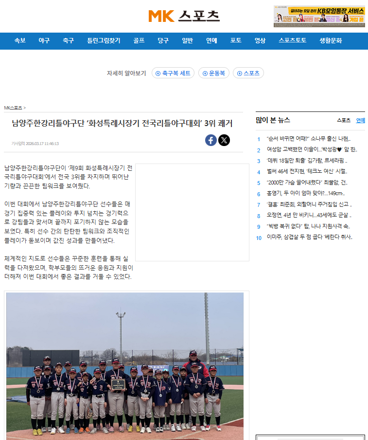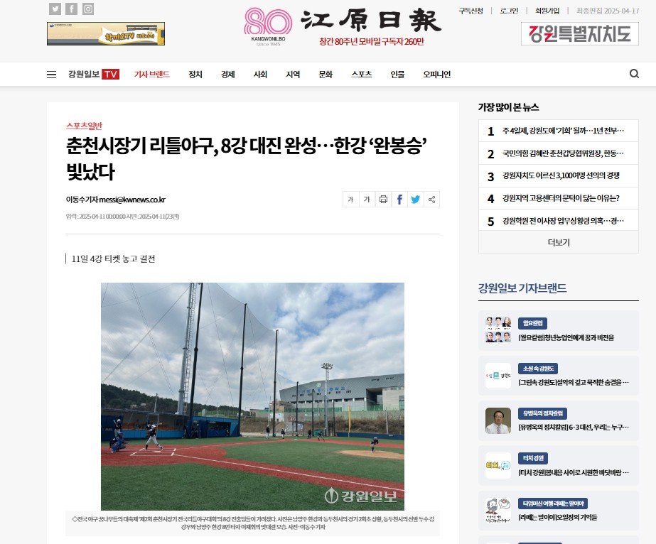 ³²¾çÁÖ ÇѰ­¸®Æ²¾ß±¸´ÜÀÇ ´º½º ¹× ±â»ç ½ºÅ©·¦ÀÔ´Ï´Ù.
